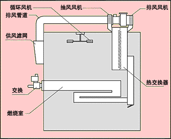 當熱氣排到爐外時,通過熱交換器回收新鮮空氣和以85%的高交換率回收熱能。
